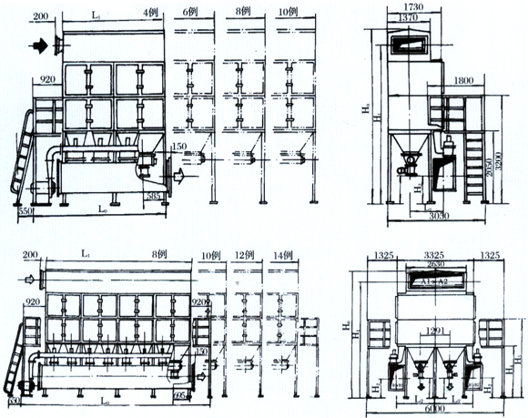 KZF(KZDF)模块组合式扁袋除尘器尺寸参数表